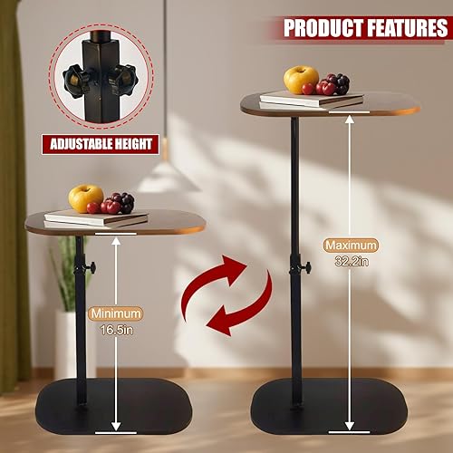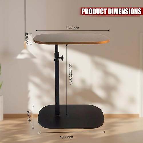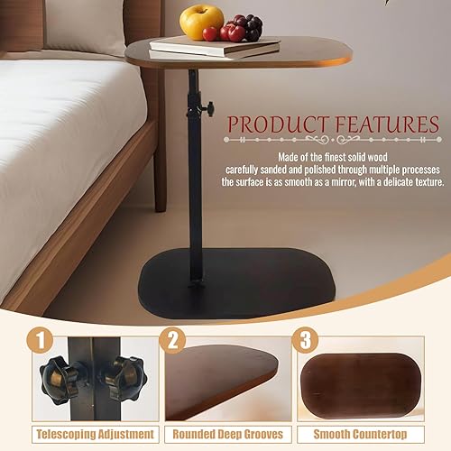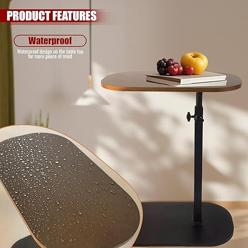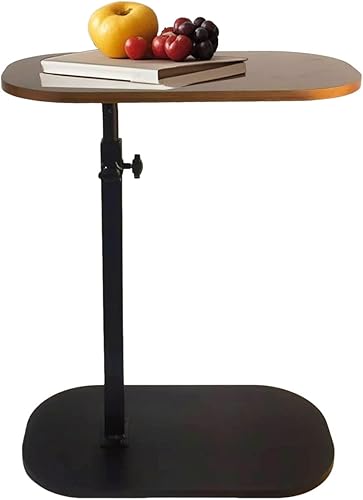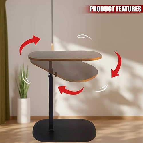 Table d'appoint en forme de C, table d'appoint pour canapé, table d'appoint pour salon, plateau TV réglable en hauteur, table d'appoint pivotante qui glisse sous (noyer)
