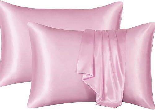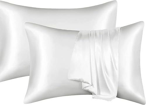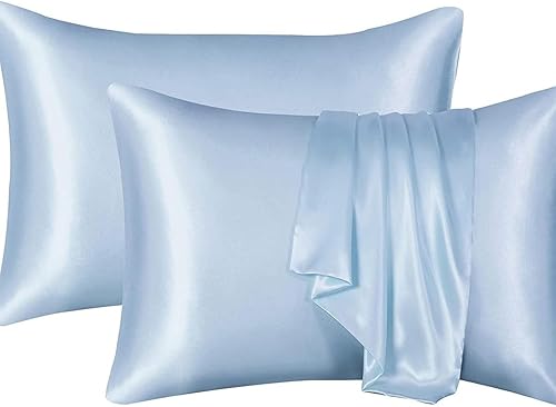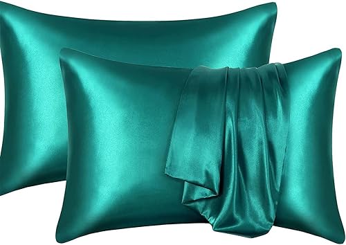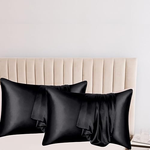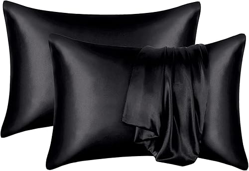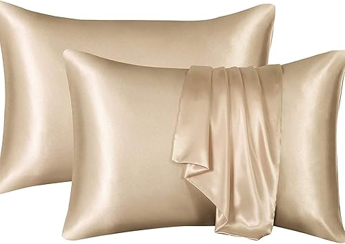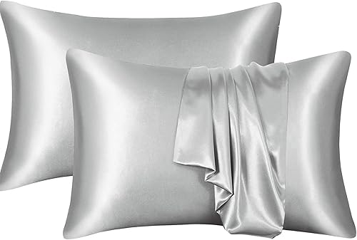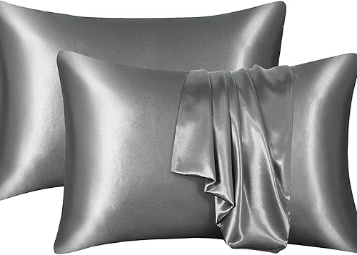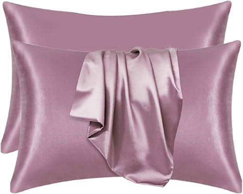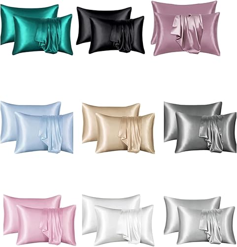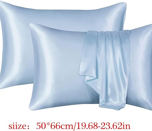 YUGSHNKFC Lot de 2 taies d'oreiller lisses imitation soie 50 x 66 cm pour réduire la friction des cheveux et