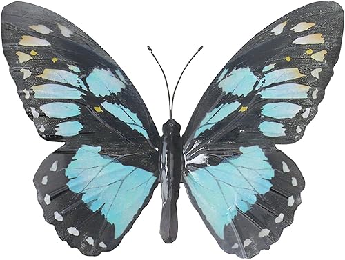 Large Metal Butterfly Light Blue and Black Outdoor Garden Home Decoration Wall Art by Primus