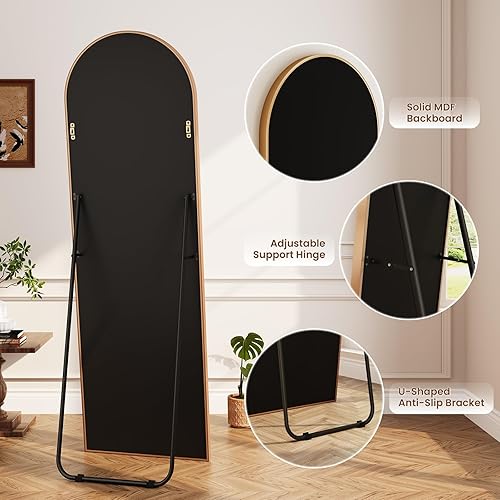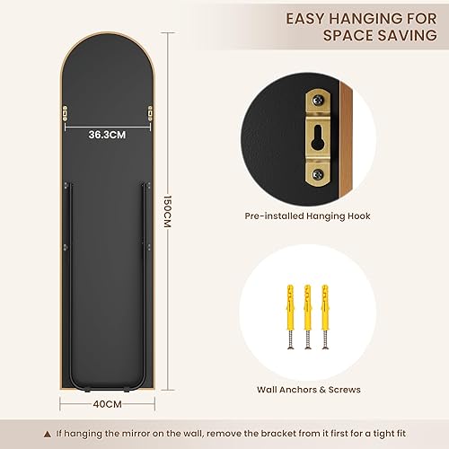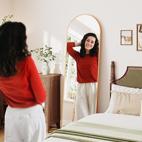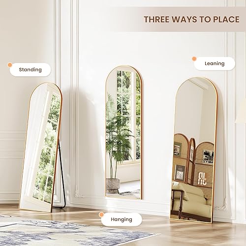 Dripex Miroir sur Pied Arqué, Grand Miroir Mural avec Cadre en Aluminium 150x40cm, Miroir en Pied Penché ou Suspendu pour Salon, Chambre, Salon, Entrée-Or