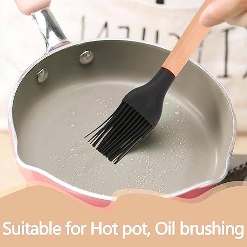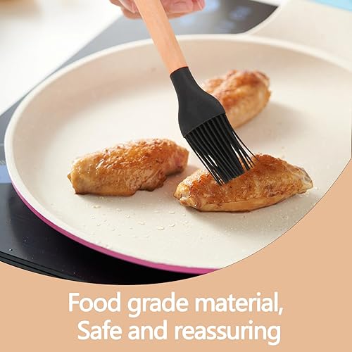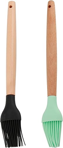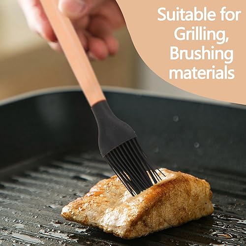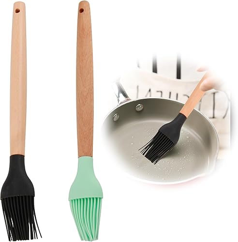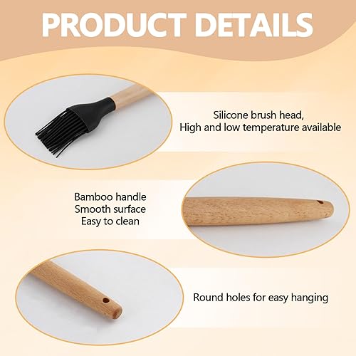 Lot de 2 Pinceaux de Cuisine en Silicone avec Manche en Bambou - Résistants à la Chaleur, Idéaux pour Grillades, Rôtis et Pâtisserie, Manche Long de 24 cm, Têtes Détachables, Noir et Blanc