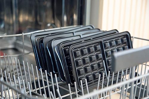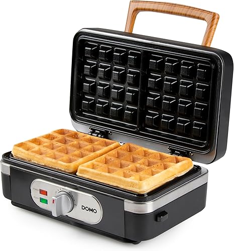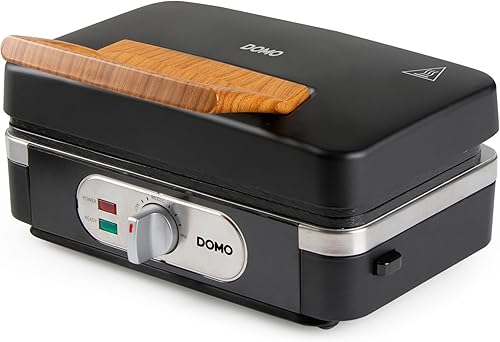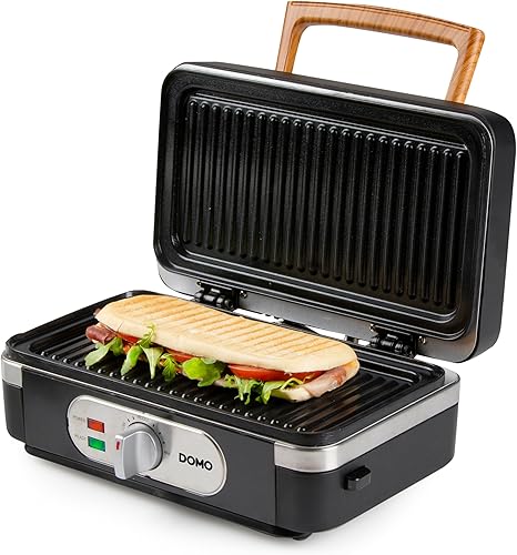 DOMO DO9278C Appareil multifonction 3 en 1 - Croque monsieur - Gaufrier - Gril contact - 1100 W - Design noir mat avec poignée en bois