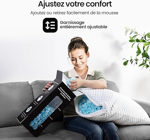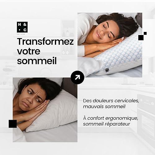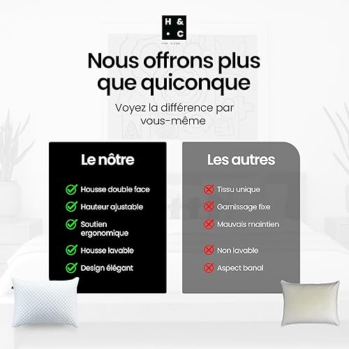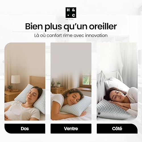Hom&Com – Oreiller Mémoire de Forme Ajustable – 71x50 cm – pour Dormir sur Le Côté et Le Dos – Housse Double Face Lavable et Rembourrage Personnalisable