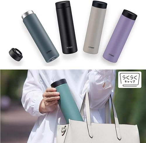 Bouteille isotherme Tiger MMZ-W Easy-to-Carry, ultra légère, petites capacités, facile à laver, sans BPA, conservation froid 24h et chaud 12h, conçue au Japon (pierre noire, 500 mL)