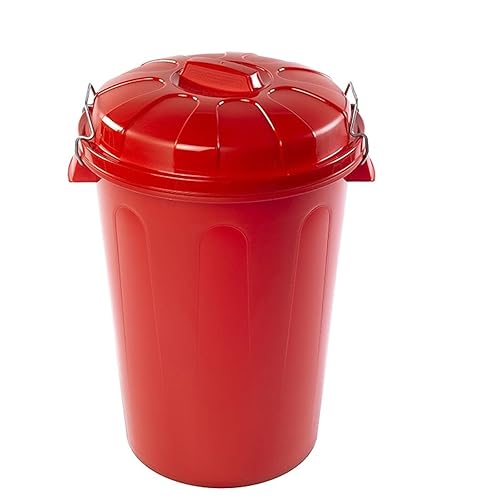 Acan Tradineur Poubelle en plastique avec poignées métalliques, poubelle avec couvercle, recyclage, industrielle, maison, fabriquée en Espagne, rouge, 100 litres, 74,5 x 57 x 52 cm
