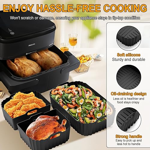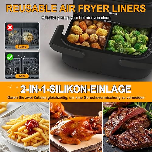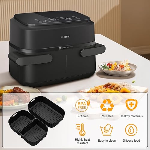 Moule en silicone pour friteuse à air chaud Philips Airfryer 1000 Series - Panier flexible - 7,1 l - 2 moules en silicone anti-adhésif - Accessoire réutilisable au lieu du papier sulfurisé