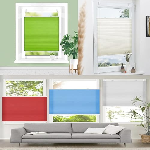 Store Plissé Occultant 110 x 110 cm Store Occultant Thermique Intimité et Protection Contre Le Soleil Aucun Trou à Percer Décoration Fenêtre pour l'intérieur, Blanc