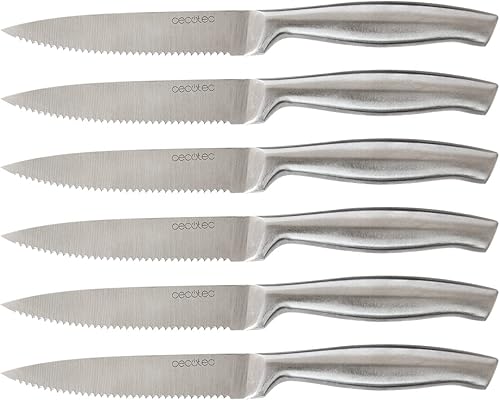 Cecotec Ensemble de 6 Couteaux à Viande Professionnels avec Dentelure Manche et Lame forgés en une Seule Pièce d'Acier Couteaux, Feuille de 2 mm d'épaisseur, Résistance et Ténacité Élevées
