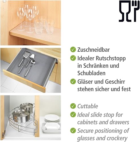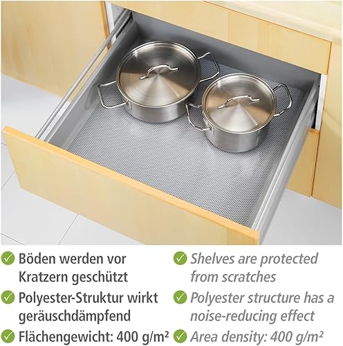 WENKO Tapis Anti-dérapant Design Gris - Tapis de tiroir, découpable, Polychlorure de Vinyle, 50 x 150 cm, Gris