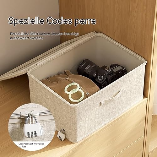 RFSHOPQU Boîte de rangement verrouillable en tissu avec serrure, boîte de rangement en tissu avec couvercle, boîte de rangement verrouillable pour vêtements, jouets