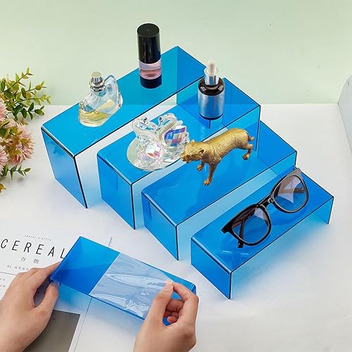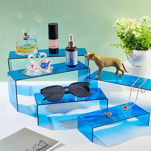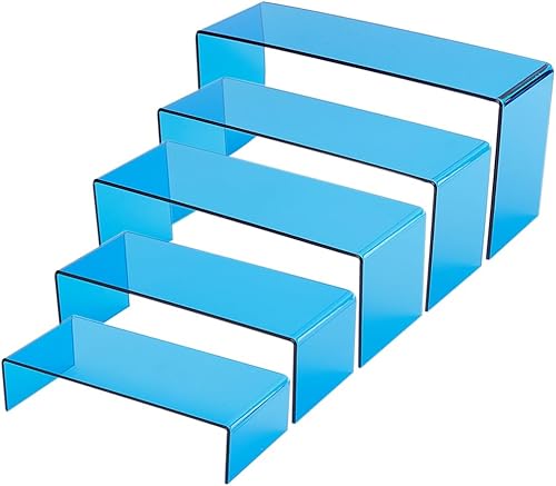 PH PandaHall 5-Tier Acrylique Display Riser Bleu Clair Présentoir Collectibles Stands Étagère Vitrine Luminaires pour Bijoux Cosmétiques Verres Dessert Cupcake Candy Treat Action Figure Display