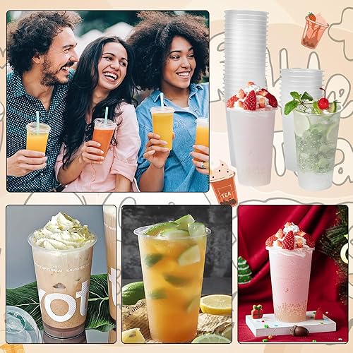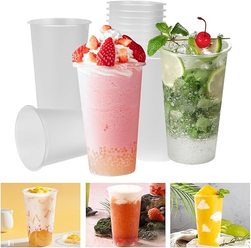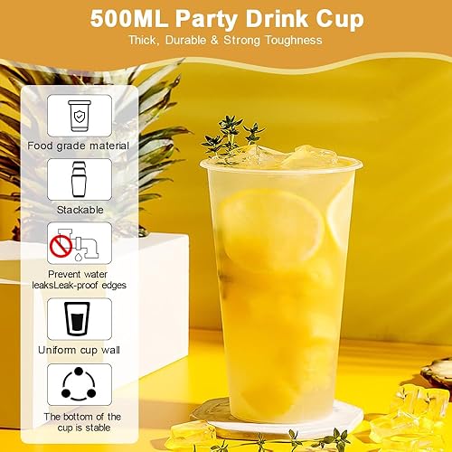 Kleemeiero 50PCS Gobelet Plastique Gobelets Réutilisables Givré 500ML Verre Plastique Reutilisable Gobelets Verre a Biere Plastique Tasses à Dessert Transparentes pour Fete Mariage Famille