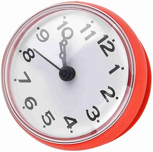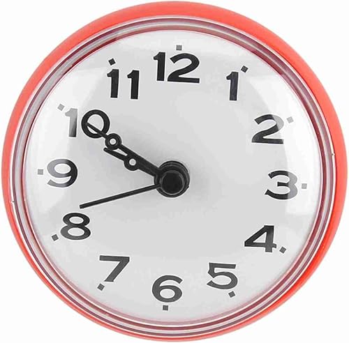 Horloge étanche, Horloge de Salle de Bain, Horloge étanche Silencieuse à Balayage ABS à la Mode pour Salle de Bain ou Cuisine (Rouge)