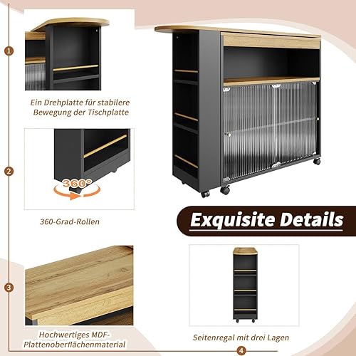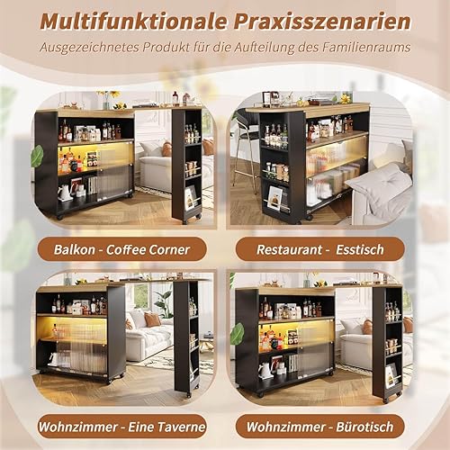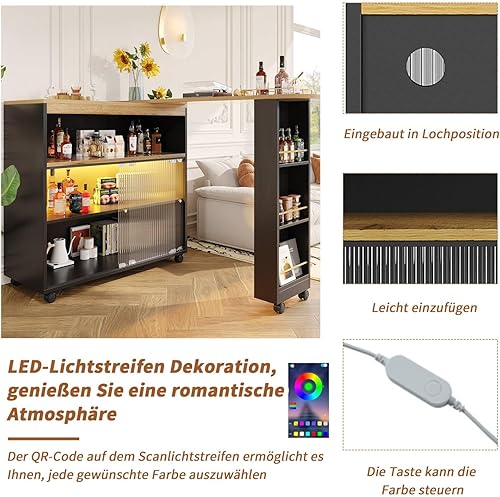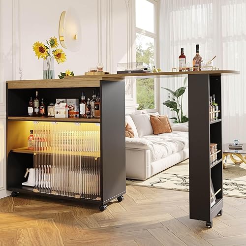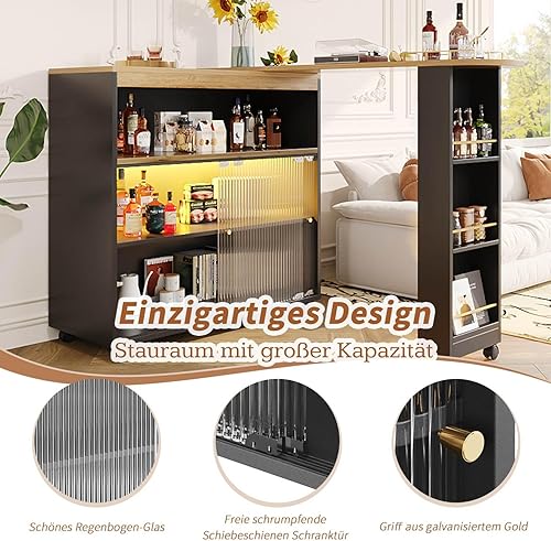 Sweiko Table de bar extensible 138-204 x 39 x 105 cm avec espace de rangement, îlot de cuisine mobile moderne avec lumière LED (blanc, pieds de table découpés)