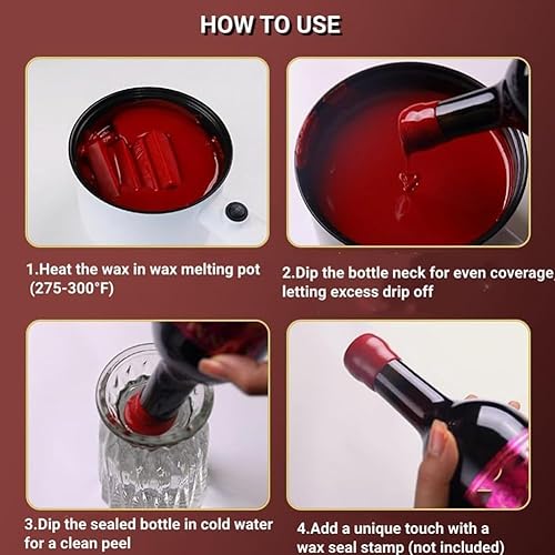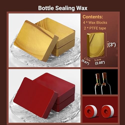 Hopbucan Blocs de Cire à Cacheter pour Bouteilles - Cire D'Embouteillage Résiliente et Polyvalente pour Le Vin, 4 Pépites de Cire 0,2 Kg avec PTFE, Rouge