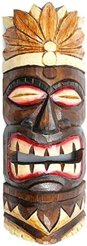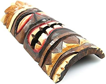 Coco Papaya Masque Tiki 30cm en Bois Motif Plumes. Déco tribale polynésienne.