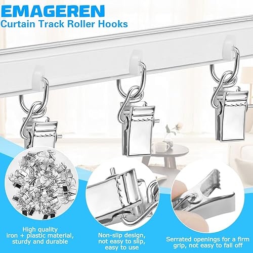 EMAGEREN 50 Pièces Pince à Rideaux en Métal T-Glider Crochets de Rideau Pinces pour Rideaux à Enroulement Clip de Rideau pour Rails en T Glisseur de Rideau pour Rideaux de fenêtre, Montage au Plafond