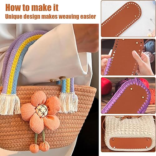 Dfuqanb Lot de 9 sacs en polyuréthane (18 x 5 cm), fond de sac en cuir synthétique, fond de sac à crochet, fond de sac, sac à bandoulière, sac à tricot, sac à bandoulière