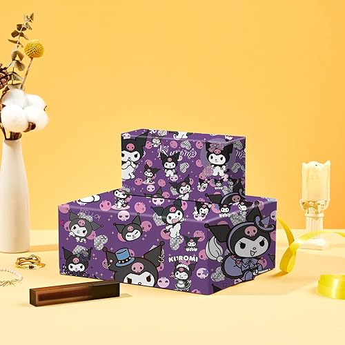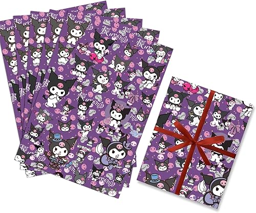 HOOKTA Kitty Kuromi - Lot de 5 rouleaux de papier cadeau - 51 x 75 cm - Papier cadeau durable - Pour anniversaires d'enfants, fêtes, décoration festive (lapin violet)