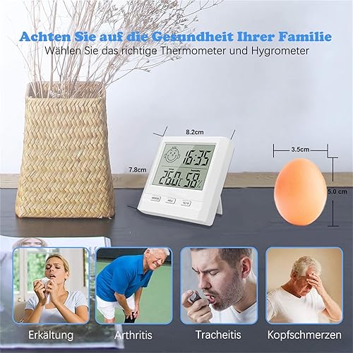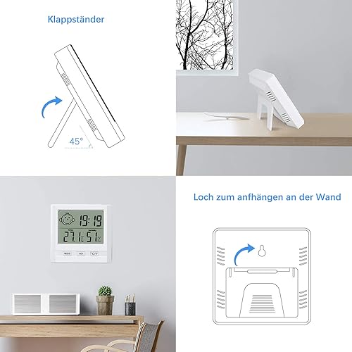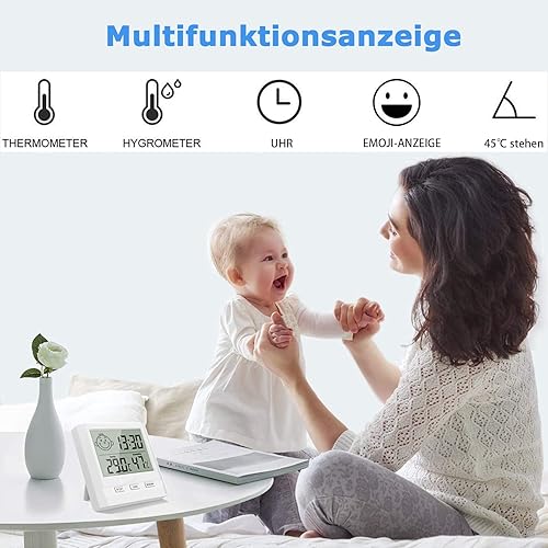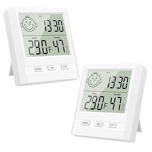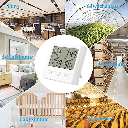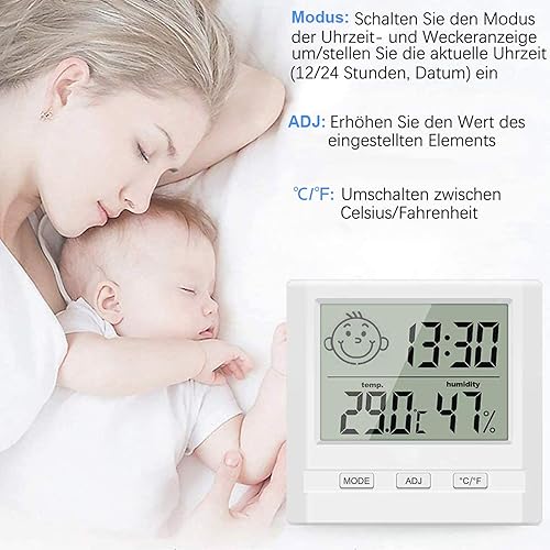 Hygromètre avec Horloge - Lot de 2 Mini Thermomètres Hygromètre Numérique Intérieur - Hygromètre D'Humidité pour La Maison, Le Bureau, La Chambre De Bébé - Blanc (Batterie Incluse)