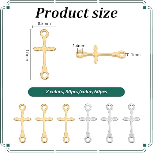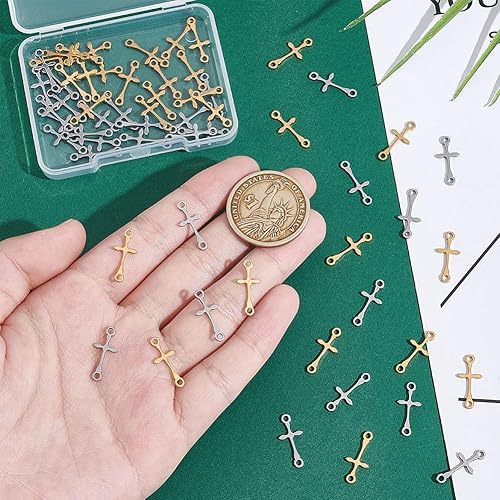 UNICRAFTALE 60pcs 2 couleurs Breloques Croix Breloque Acier Inoxydable Breloque Connecteur Croix Breloques Doré Breloque Croix Pendentifs de Pâques pour la Fabrication de Bracelet Collier et de Bijoux