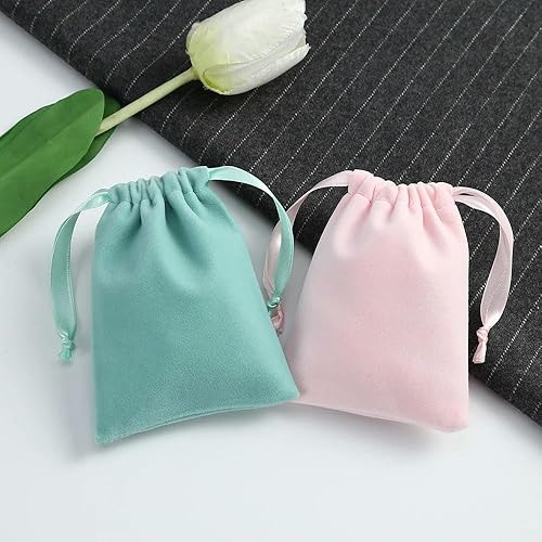 QIUMING Lot de 50 Petits Sacs Cadeaux en Velours pour Bijoux, Format Mini 7 x 9 cm, avec Cordon de Serrage, Pochette de Rangement pour Cadeaux de Mariage, Bonbons, Cadeaux pour Filles