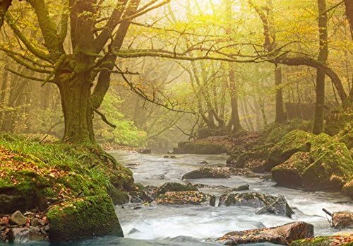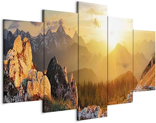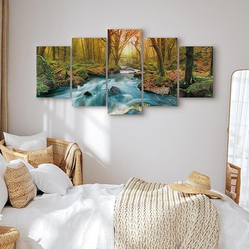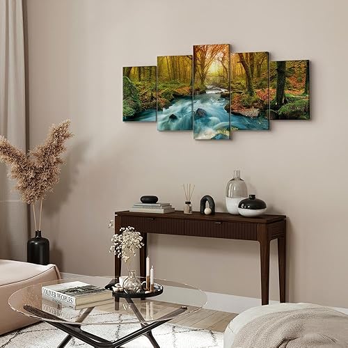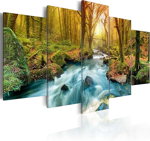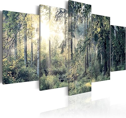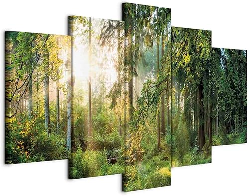 B&D XXL - Tableau décoratif paysage 200x100 cm - Impression sur toile colorée - Décoration murale pour salon et chambre - Arbres paysage forêt feuilles nature paysage plantes soleil c-C-0033-b-n