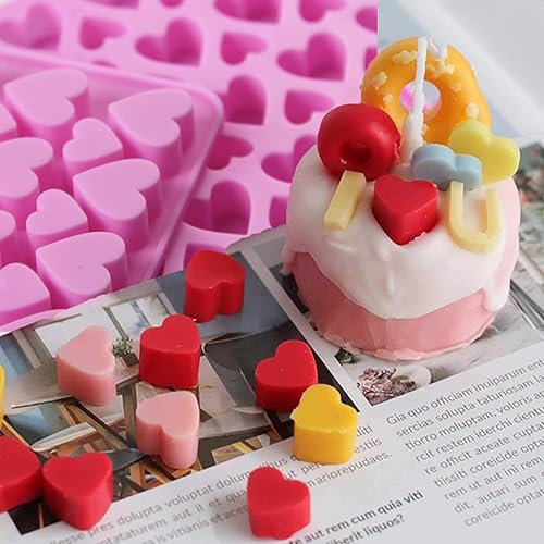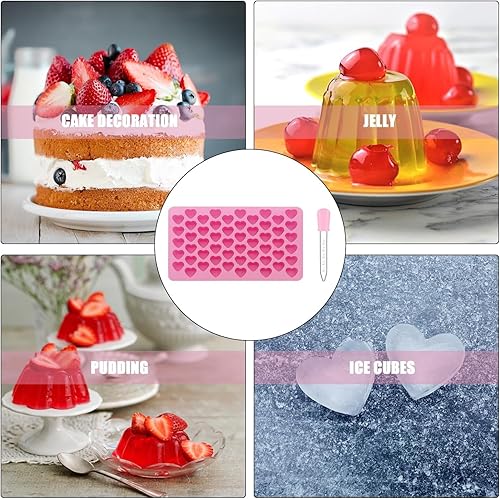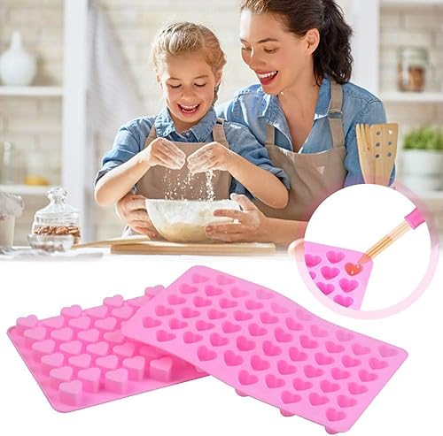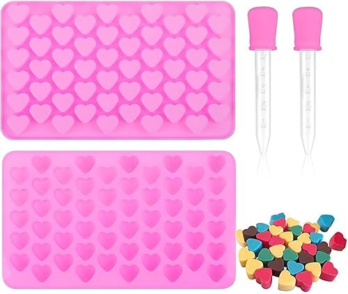 Bkemkri Lot de 2 Moule en Silicone en Forme de Cœur, Moule à Chocolat Réutilisables avec 55 Cavité Mini Moule en Silicone Antiadhésif avec 2 Compte-Gouttes pour Chocolat Bonbon Gelée Gâteau (Rose)
