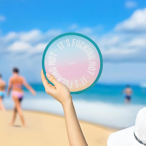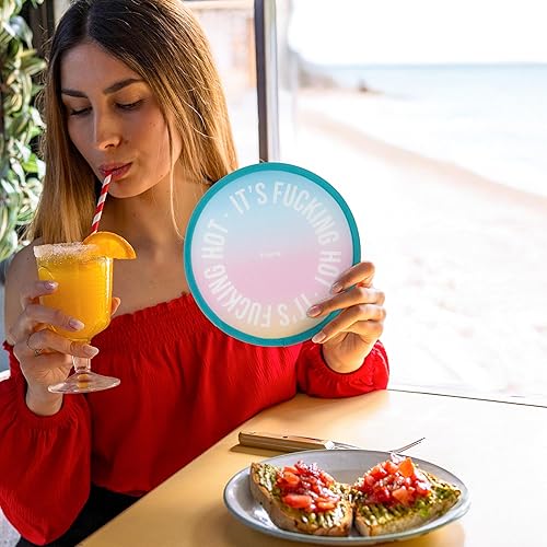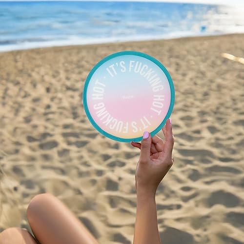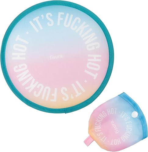 fisura. – Éventail rond pliable It’s f*cking hot. Ventilateur compact au design dégradé. Modèle pliant idéal pour l’été et les festivals. 1 unité, diamètre 20 cm