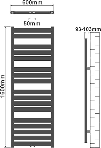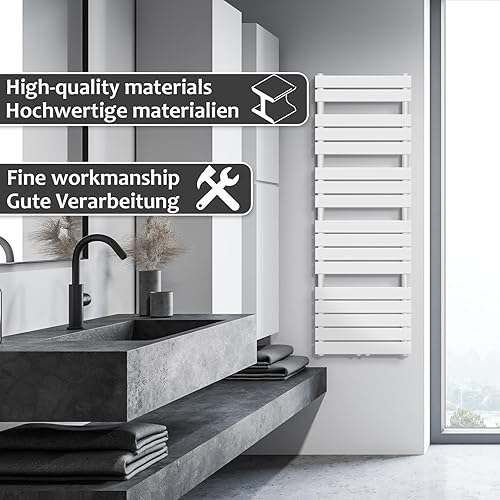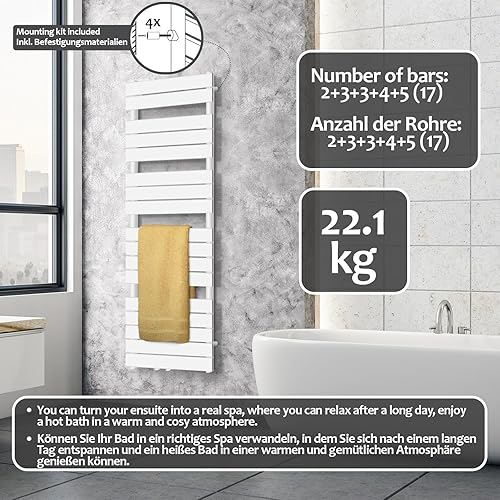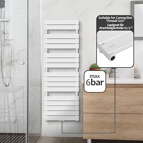 Aquamarin® Sèche-Serviette pour Salle de Bain - Mural, en Acier, Vertical, Connexion Moyenne ou Latérale, Blanc ou Anthracite - Radiateur, Centrale pour Salle de Bain (1500x450 mm, Blanc)