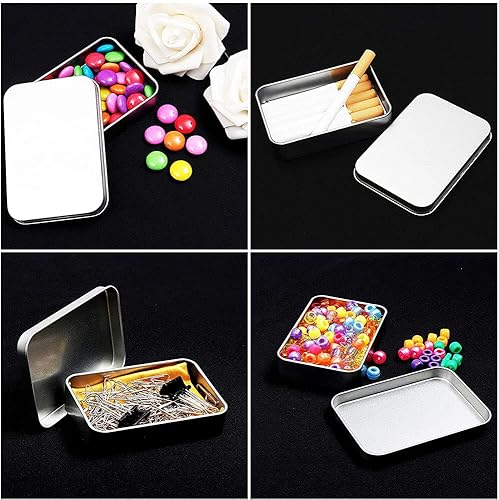 Boîte Métallique, 12 Pièces Argent Boite En Étain, Boîtes Rectangulaires Vides En Métal, avec Couvercle, pour Clés De Rangement, Cosmétiques, Câbles Usb, Nail Art, Mini Bougies(3.1*2.4*0.7in)