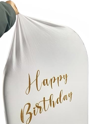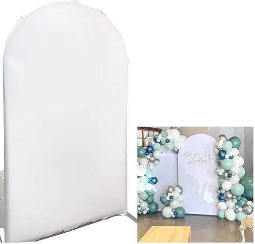 FiVan Arrière-plan rond en élasthanne double face pour anniversaire, mariage, enterrement de vie de jeune fille, décoration de fête, élastique, lavable, arc métallique, lettres, blanc