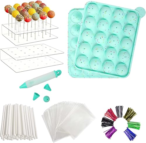Moules à pop, 100 Bâtons + 100 sachets à friandises + 100 attaches torsadées en couleurs mélangées + 1 stylo de décoration