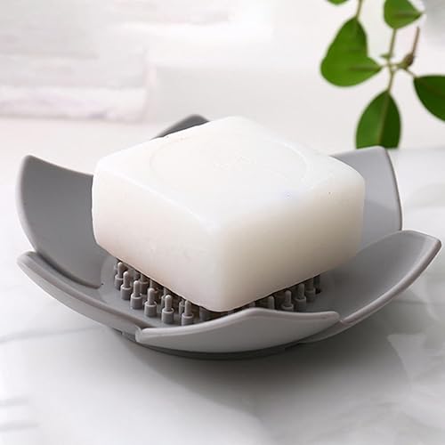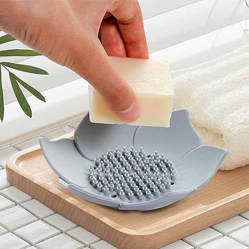 Porte-savon en forme de fleur de lotus | Plateau à savon antidérapant avec drainage | Porte-savon en silicone pour douche, salle de bain, cuisine et évier