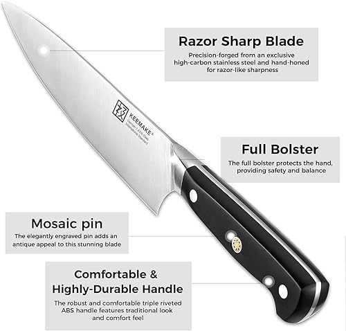 KEEMAKE Couteaux de Cuisine 6PCS, Set Couteau Cuisine en Acier Inoxydable Allemand, Couteau Office Professionnel 8,9cm, Couteau a Pain 20cm, Couteau Japonais 18cm, Couteau de Chef 20cm