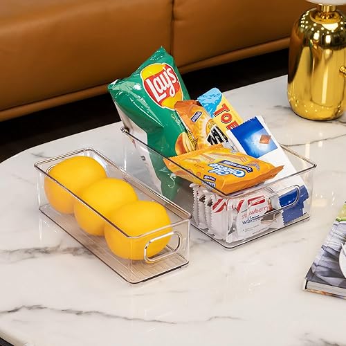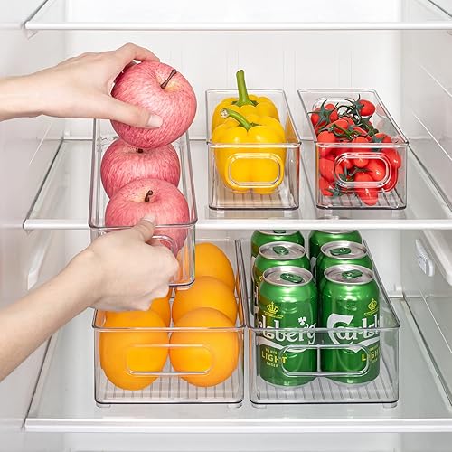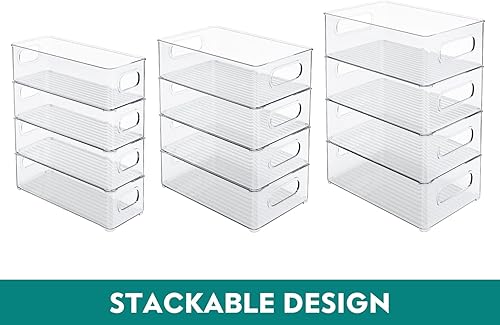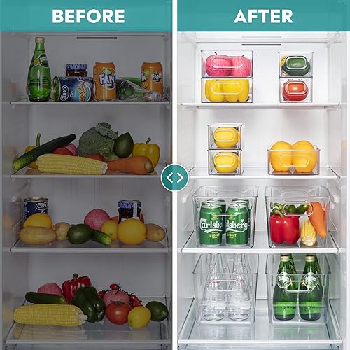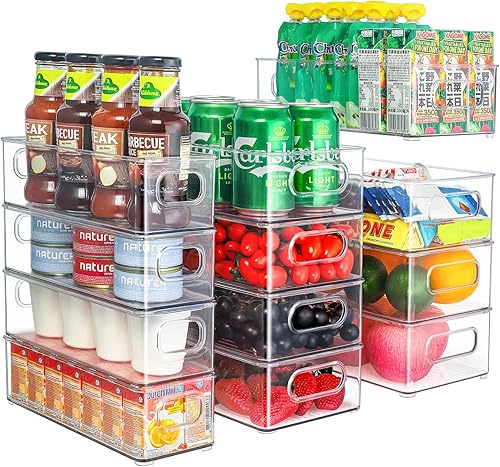 THLEITE Lot de 12 Rangement Frigo Transparent (3 Tailles), Organiseur Frigo Cusine pour Réfrigérateur, Cuisine, Salle de Bain, Tiroir, Armoires et Comptoirs – sans BPA (Clair)