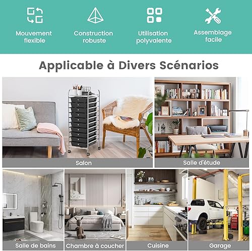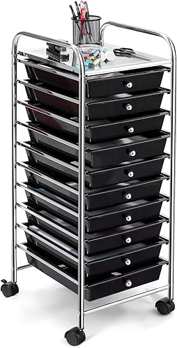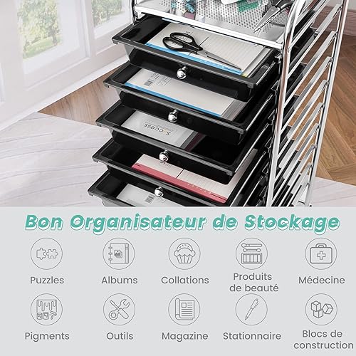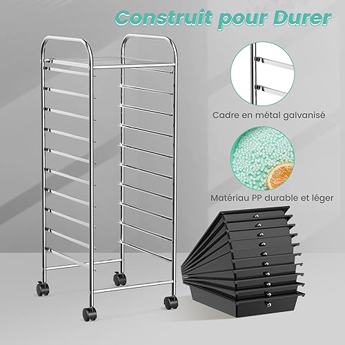 GOPLUS Chariot de Rangement 10 Tiroirs, Tour de Rangement à roulettes, Cadre en Acier, pour Chambre, Bureau, 37 x 33 x 86 CM, Noir