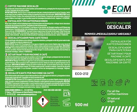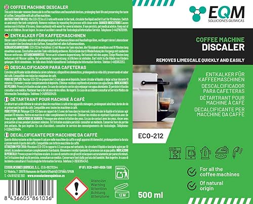 EQM - ECO-212 - Détartrant pour machine à café - 1L - 100% d'origine naturelle - Compatible avec toutes les machines à café