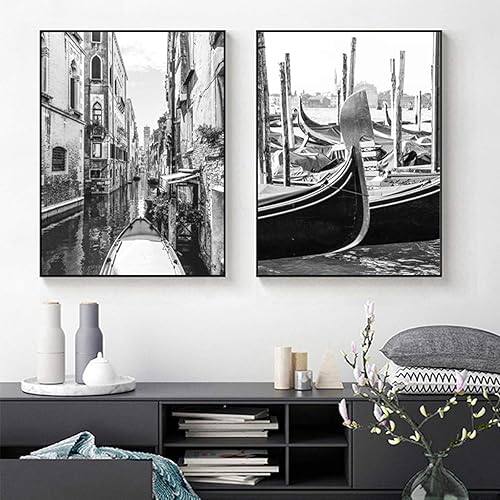 weiling Affiche photo architecturale noir et blanc peinture de paysage de rue italienne impression sur toile salon décoration de la maison 30x40cmx2 pièces sans cadre
