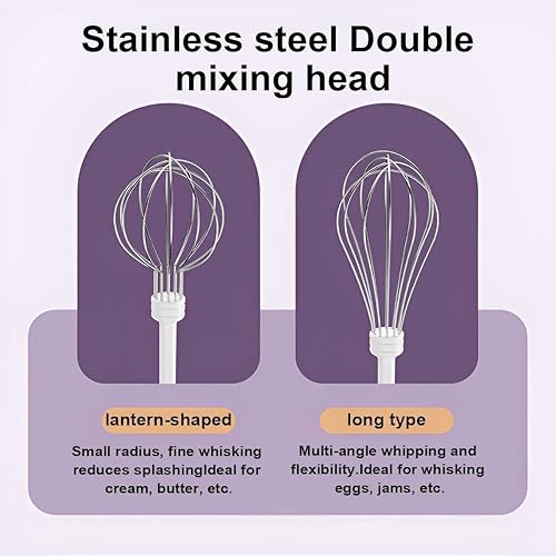 Batteur à Main Avec 2 Fouets Amovibles, LULUWA Fouet électrique Manuel avec 3 Modes de Vitesse Fouet à Main