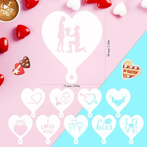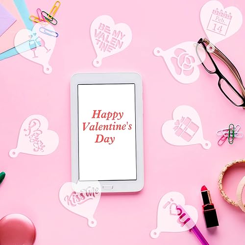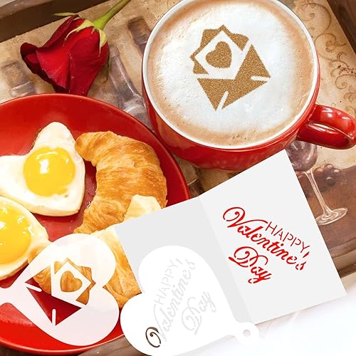 MWOOT 30 Pièces Saint-Valentin Pochoir Café Stencil, Valentine's Day Réutilisable Pochoir Gateau, DIY Pochoir Patisserie Art pour Capuccino Cafe Chocolat Chaud Pain Décoration