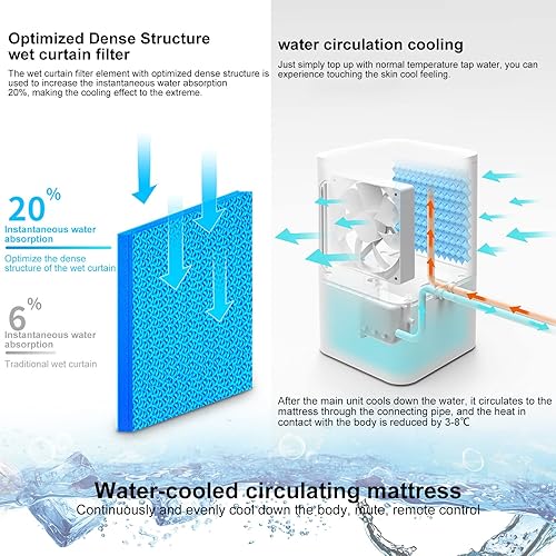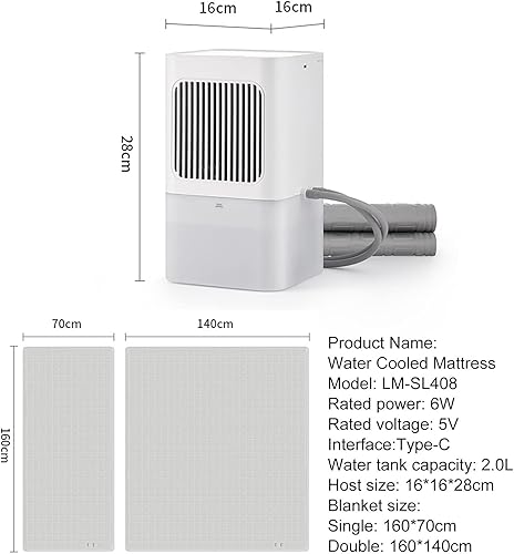 Matelas RafraîChissant pour Lit, SystèMe de Surmatelas Refroidisseur d'eau éLectrique pour Dormeur Chaud et Transpiration Nocturne, 3 Vitesses RéGlables, RéServoir d'eau Visible de 2L,160×70cm