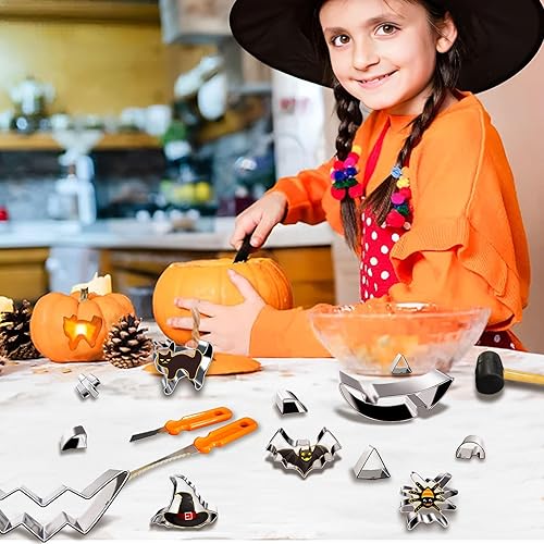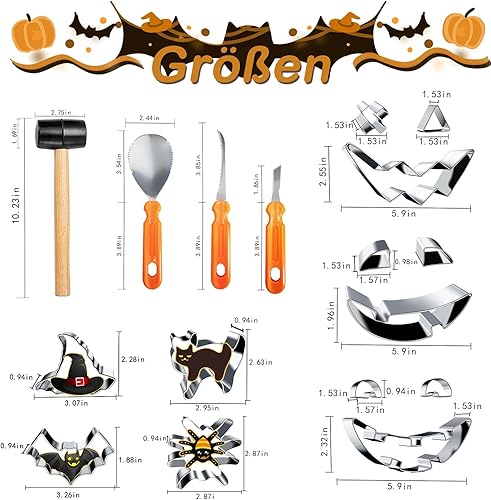 Kit de sculpture de citrouille pour Halloween,2024 Kit de sculpture de citrouille innovant pour le bricolage avec emporte-pièce en acier inoxydable,Couteau à sculpter professionnel pour citrouille Kit