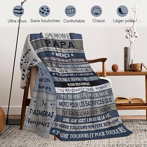 Yesbird Cadeau Papa, Cadeau Anniversaire Papa, Joyeux Anniversaire Papa, Cadeau Fete des Pere, Original Idee Cadeaux Noël pour Pere Homme de Fille/Fils, Cadeau pour Papa Couverture 130x150CM
