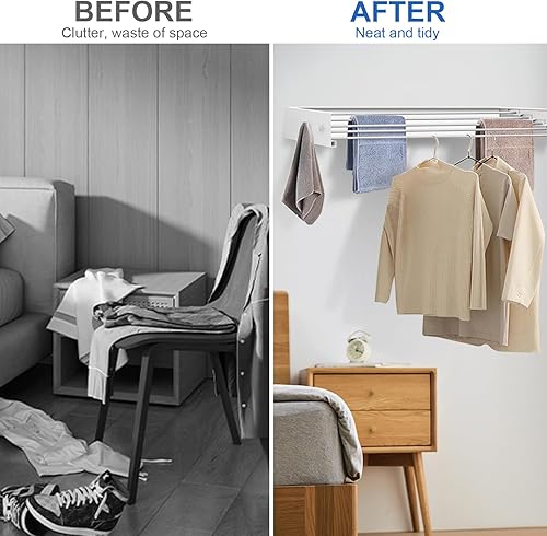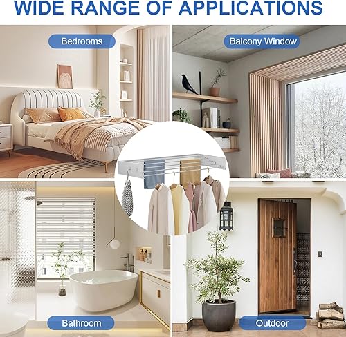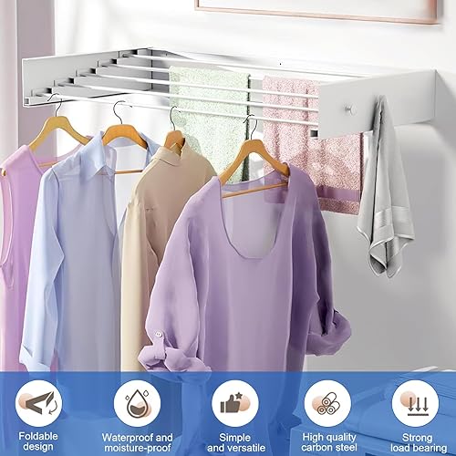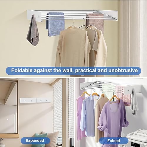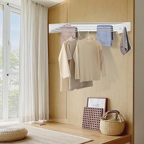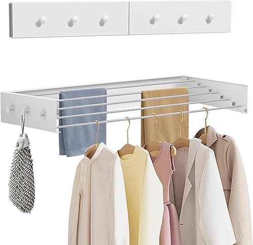 YCBTREE Étendoir à linge mural pliable en acier au carbone avec 4 crochets, capacité de charge de 25 kg, pour intérieur et extérieur, 60 cm