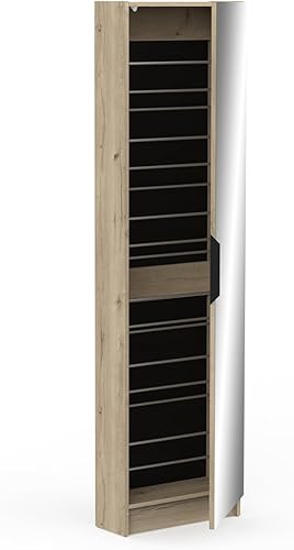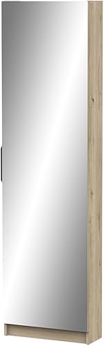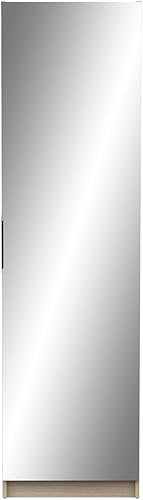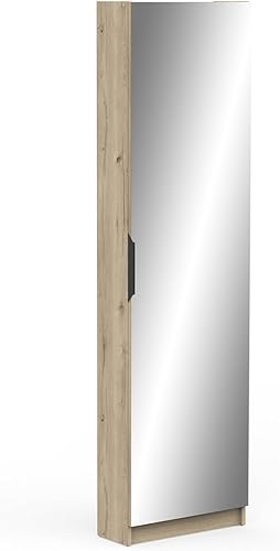 Demeyere Meuble D’Entrée avec Miroir & Rangement pour Chaussures 12 Paires en Bois Moderne – Idéal pour Les Petits Espaces – Coloris Chêne Royal - 50 x 180 x 21 cm