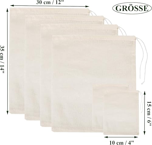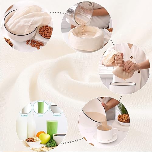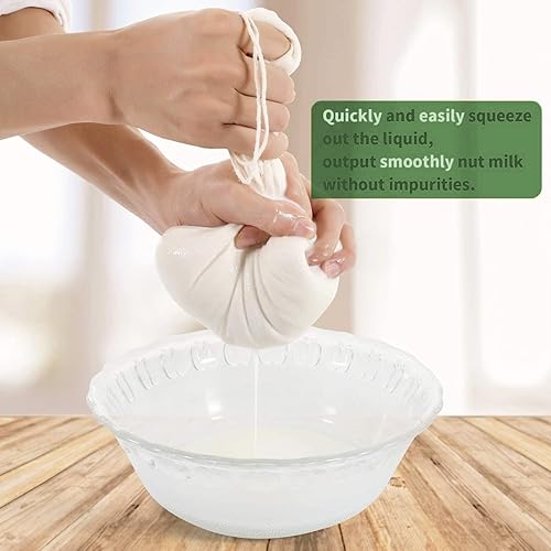 Lot de 6 sacs à lait de noix lavables Bojuzhi 100 % coton bio - Sacs à fromage réutilisables en mousseline pour lait d'amande, yaourt, jus de café, thé