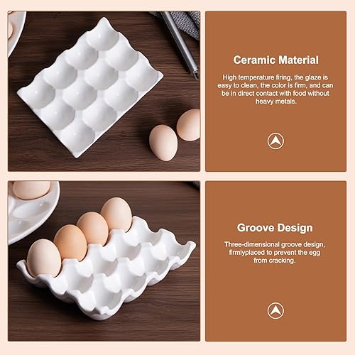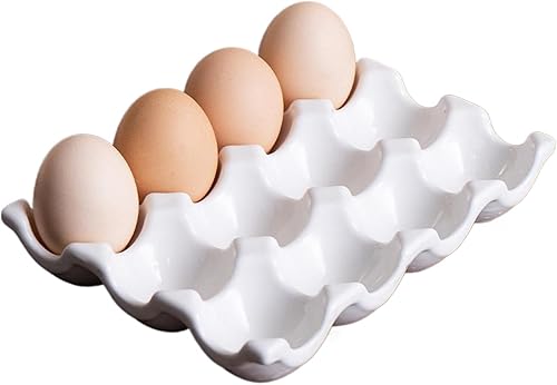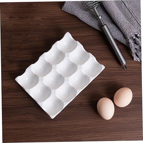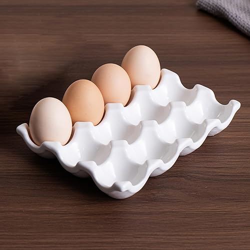 Porte-œufs en céramique, 12 tasses Boîte de rangement du plateau d'oeuf en porcelaine, plateau de rangement décoratif facile à nettoyer pour réfrigérateur cuisine comptoir