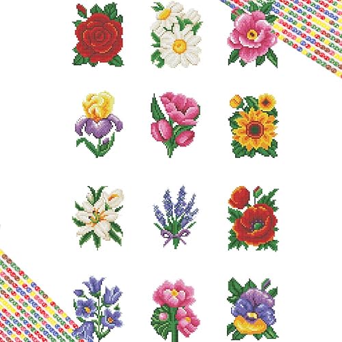 Huacan Diamond Painting 12 Pcs Mini Peinture Fleurs, Broderie Mini Diamant Painting Kit Complet, Peinture Diamant Rond Artisanat Strass Point de Crx Painting pour Adultes, Décoration Intérieur