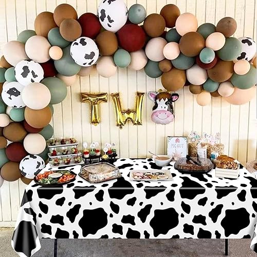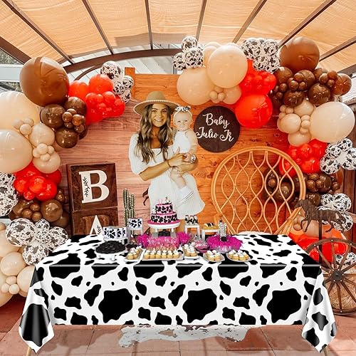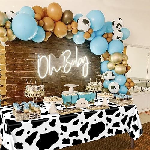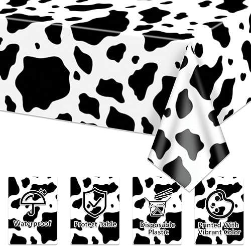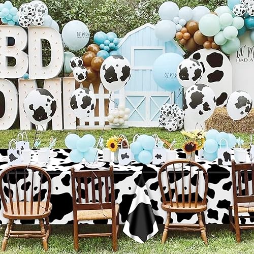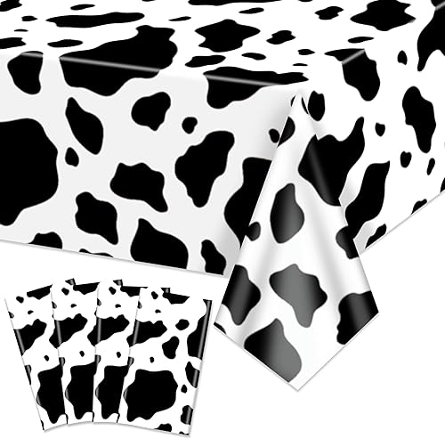 Hegbolke Lot de 4 nappes rectangulaires à imprimé vache noire, 210 x 130 cm, nappe rectangulaire pour fête prénatale, fête d'anniversaire, décoration de fête d'anniversaire